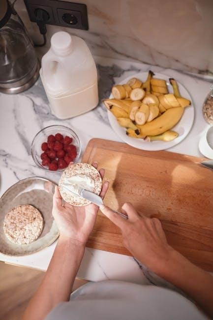 Recipes range from simple breakfast options like overnight oats with berries to more elaborate dinners such as grilled salmon with roasted vegetables. The book prioritizes lean proteins, healthy fats, and abundant produce, ensuring nutritional balance. Online resources and PDF versions often showcase similar recipe styles, emphasizing fresh, seasonal ingredients.