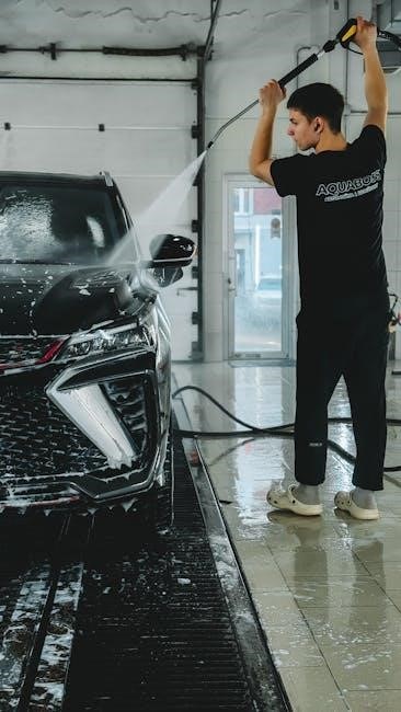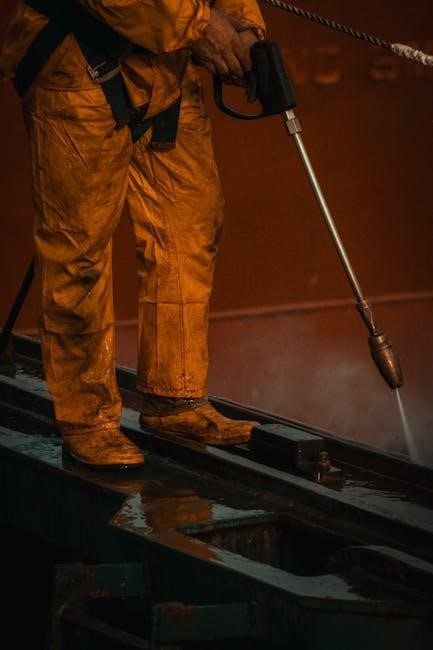 Avoid using hot water, as it can damage the pump. A garden hose with a minimum diameter is recommended for optimal performance. Ensure the water supply hose is free from kinks and obstructions. Proper water connection is crucial for the pressure washer’s functionality and longevity, preventing damage and ensuring efficient operation.