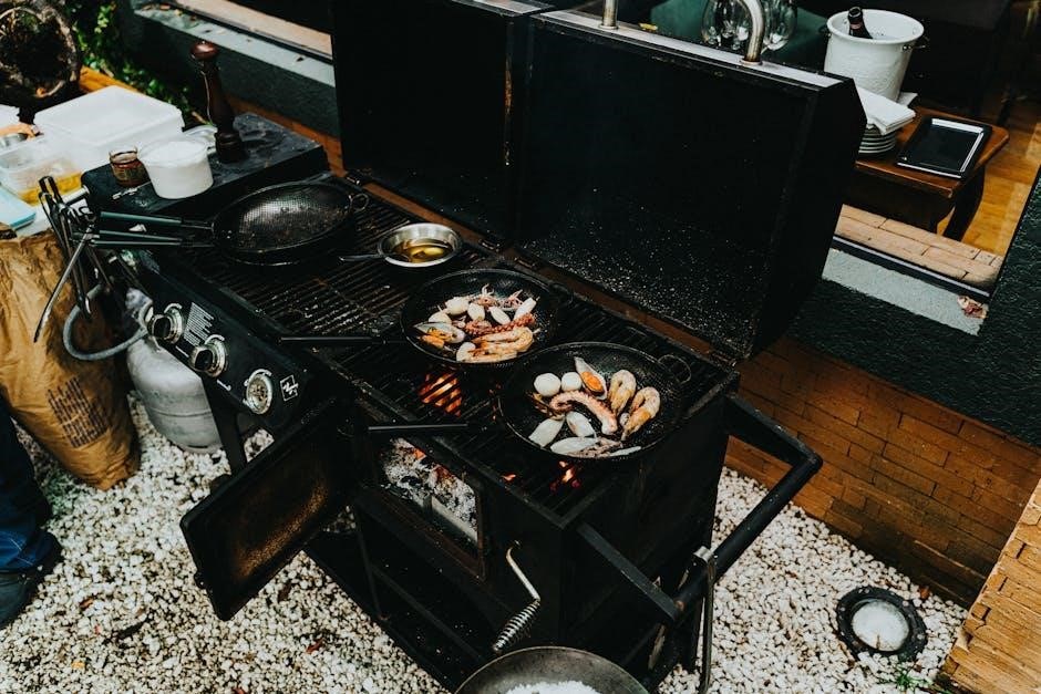 The grill plate, a separate accessory, slots into the basket area for grilling functions. Locate the power cord and ensure it’s compatible with UK electrical standards. Some models include a steam accessory, consisting of a perforated tray and a water reservoir. Understand the function of the ‘Thermo-Spot’ indicator on compatible cookware, signaling optimal temperature. Refer to the user manual’s diagrams for clear visual identification of each part before initial setup.